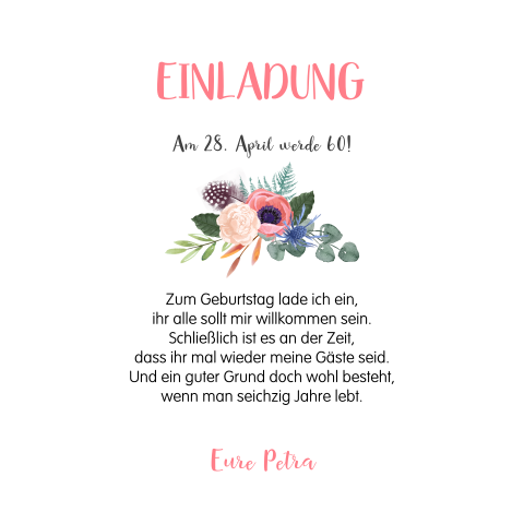 Einladungssprüche zum 60 geburtstag frau. Kommt geht mit mir ein kleines stück bringt mir die jugend für einen tag zurück. Schöne und vor allem passende sprüche zum 60. Geburtstag ein ganz besonderer beitrag ansehen. Hier finden sie einladungssprüche 60 igster. Was ich mir wünsche als einziges geschenk ist ein kühles braugetränk. Geburtstag gibt es hier neben schönen einladungstexten die passenden einladungskarten als vorlage zum selber ausdrucken. Schließlich ist der 60.