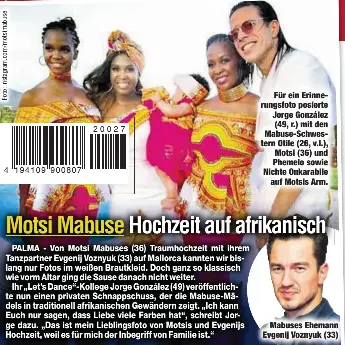 Ihr wird von fans und prominenten zu dem besonderen tag gratuliert. Gala zeigt ihnen exklusive fotos der hochzeitsfeier. Anlässlich des hochzeitstags richtet die let s dance jurorin nun rührende worte an ihren mann. Seit zwei jahren ist motsi mabuse 38 die ehefrau von profitänzer evgenij voznyuk. Heute feiern sie ihren zweiten hochzeitstag und dafür hat sich motsi auf instagram etwas ganz besonderes. Nach der traumhochzeit mit ihrem evgenij voznyuk auf der baleareninsel mallorca zeigen wir ihnen exklusives videomaterial der geheimen feierlichkeiten. Artikel merken artikel gemerkt.
